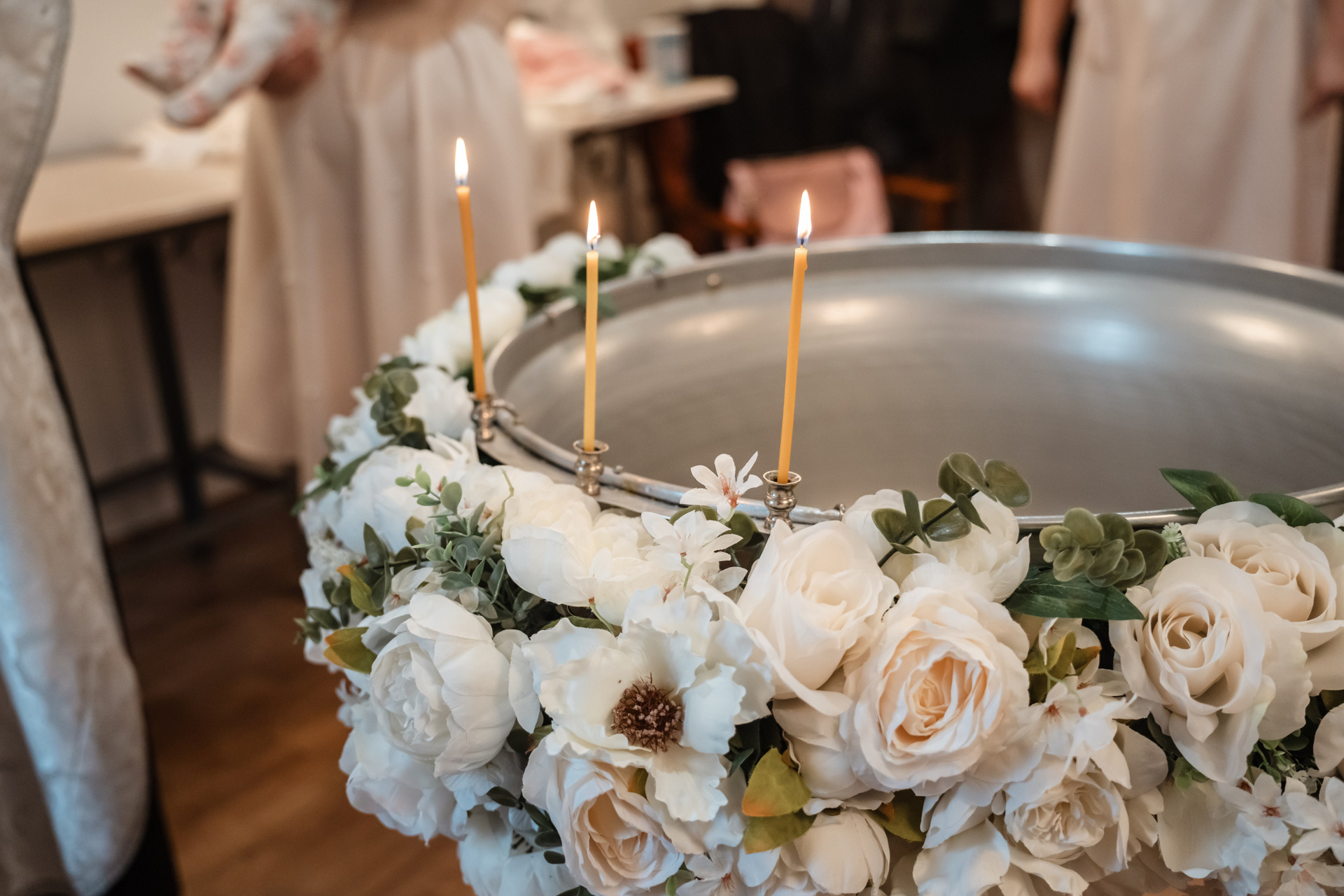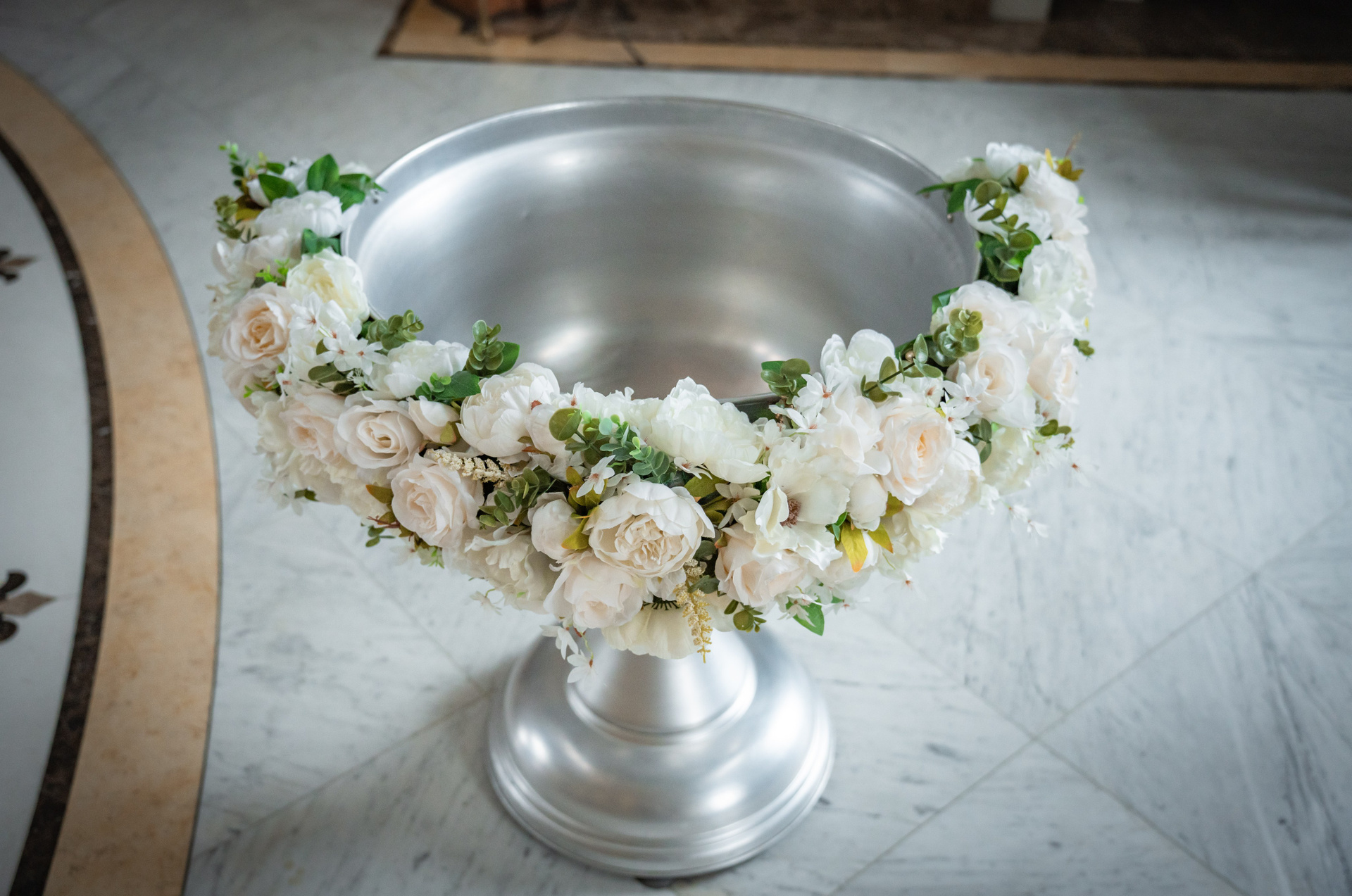Церковная купель выполняет основную функцию во время Крещения. В нее будет погружен ребеночек и это, несомненно, самые ценные и долгожданные кадры, которые Вы получите от меня после съемки Таинства Крещения. Цветы визуально усиливают красоту церемонии Крещения, подчеркивают особенность и важность момента, на фотографиях выглядят естественно и очень красиво.
